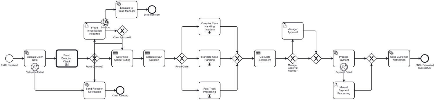 The GCC FNOL Automation connector enables insurance organizations to instantly trigger Camunda processes from any digital channel—web portals, mobile apps, call center systems, or First Notice of Loss (FNOL) intake bots. It validates GCC-specific identity formats, vehicle plate patterns, and multi-language inputs before initiating the FNOL workflow. The connector orchestrates early-stage claim creation, customer notification, routing, fraud checks, SLA timers, and downstream integrations with policy or claims systems. Designed for Gulf Cooperation Council (GCC) insurers, TPAs, and motor claims platforms looking to modernize and automate their FNOL process.